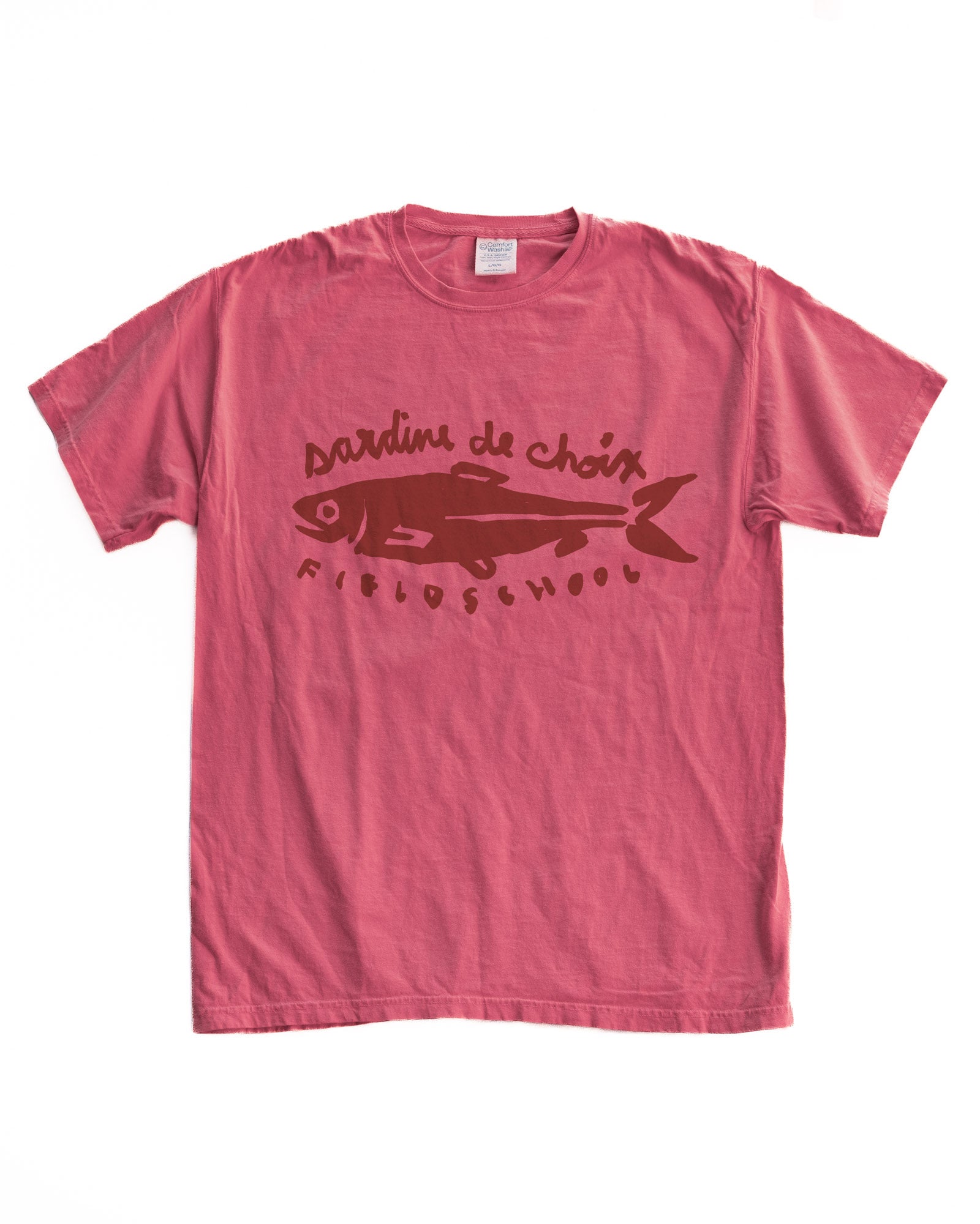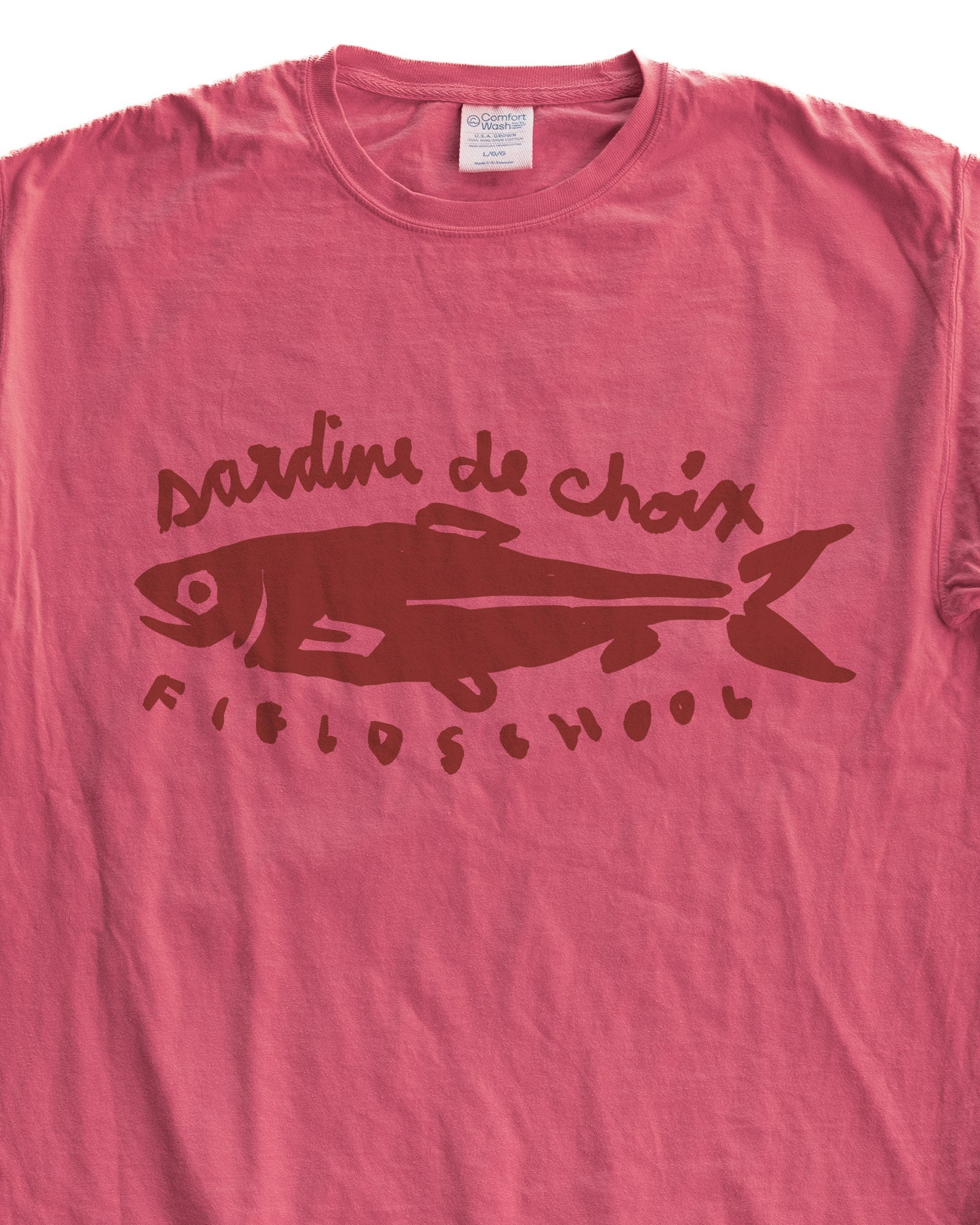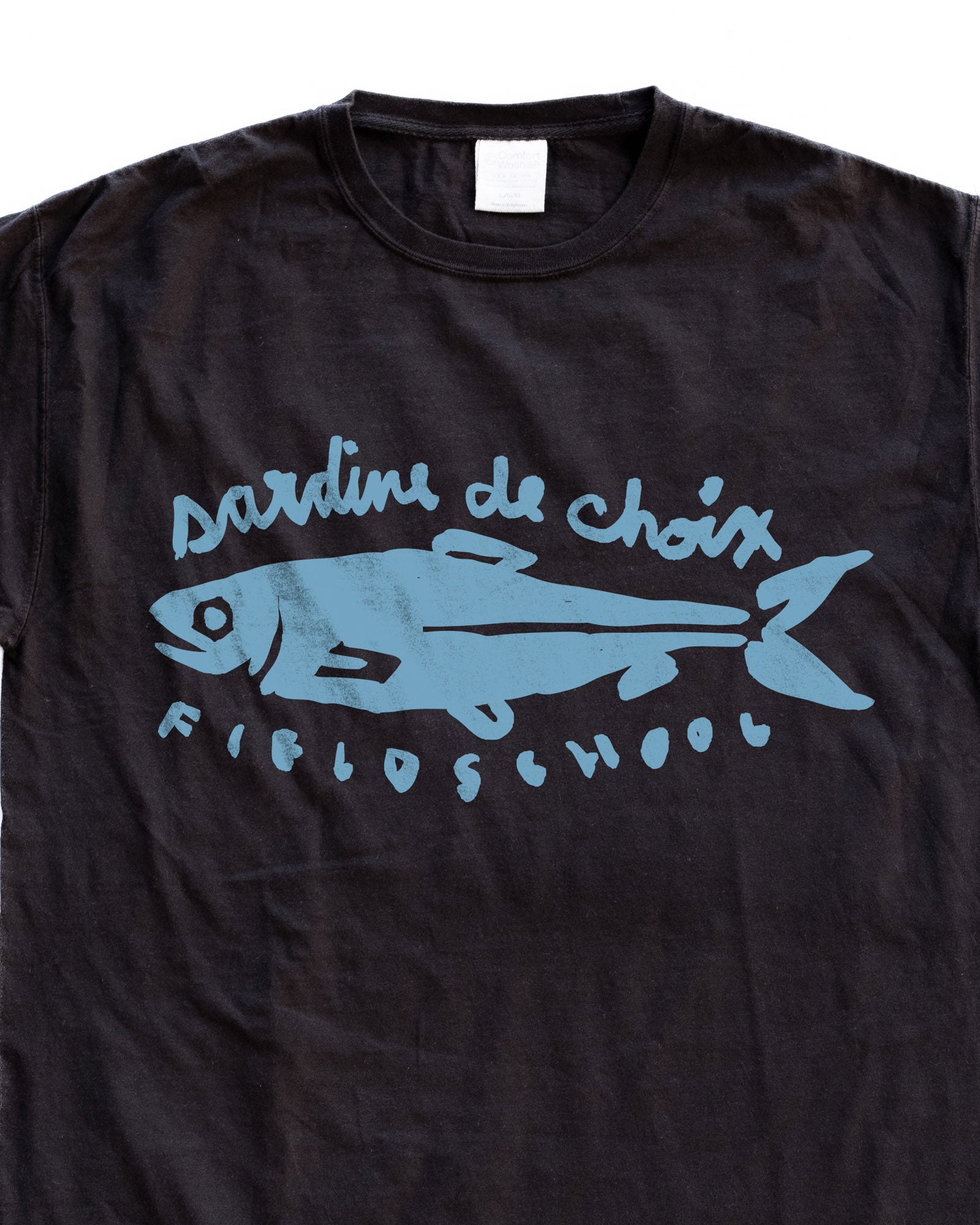 A sibling to our first sardine tee, this one’s for the salty faithful who never get tired of the classics. A French phrase up top, Fieldschool down below. A wink to late-night cafés, seaside markets, and small delights that always taste bigger than they look. Proudly packed and ready for anyone who knows good things come in tins.