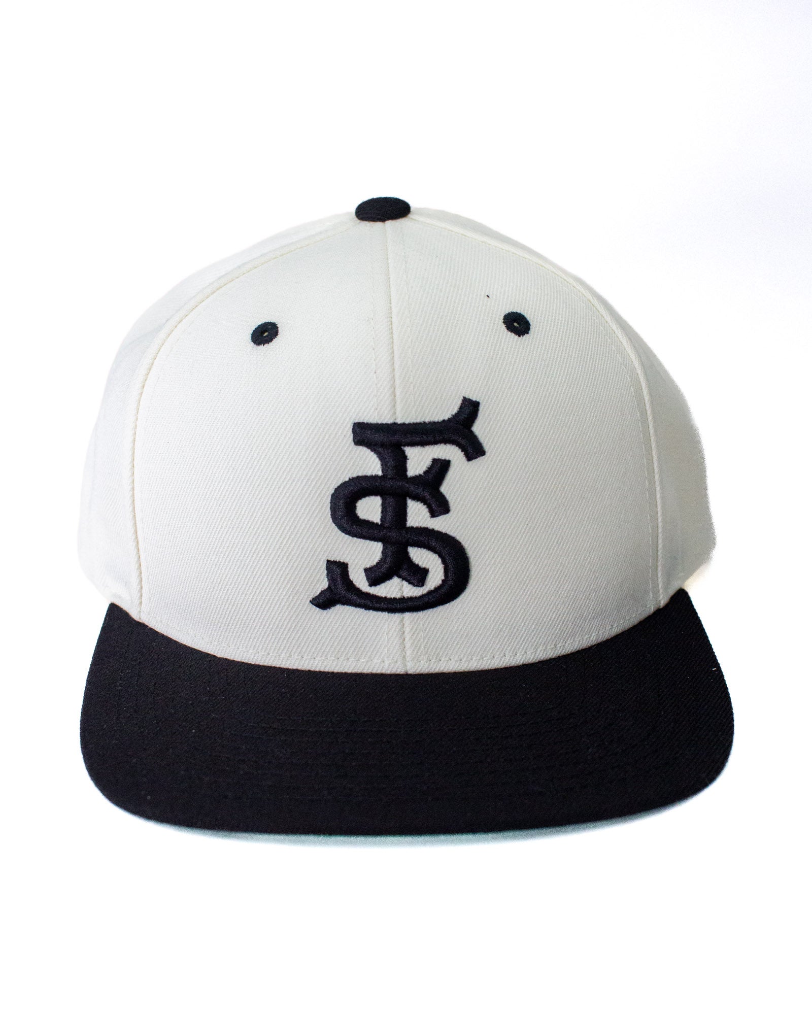 Fieldschool Sports Monogram Snapback Hat in Cream and Black